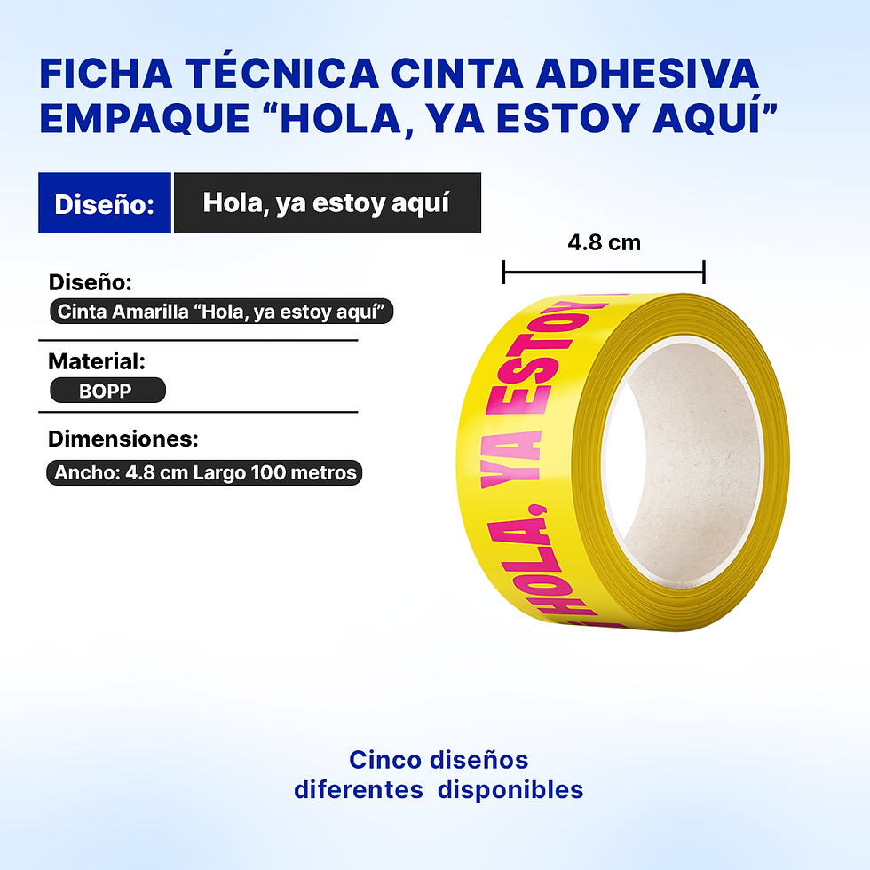 Cinta Adhesiva Empaque HOLA, YA ESTOY AQUI 48mmx100m Paquete Magneta
